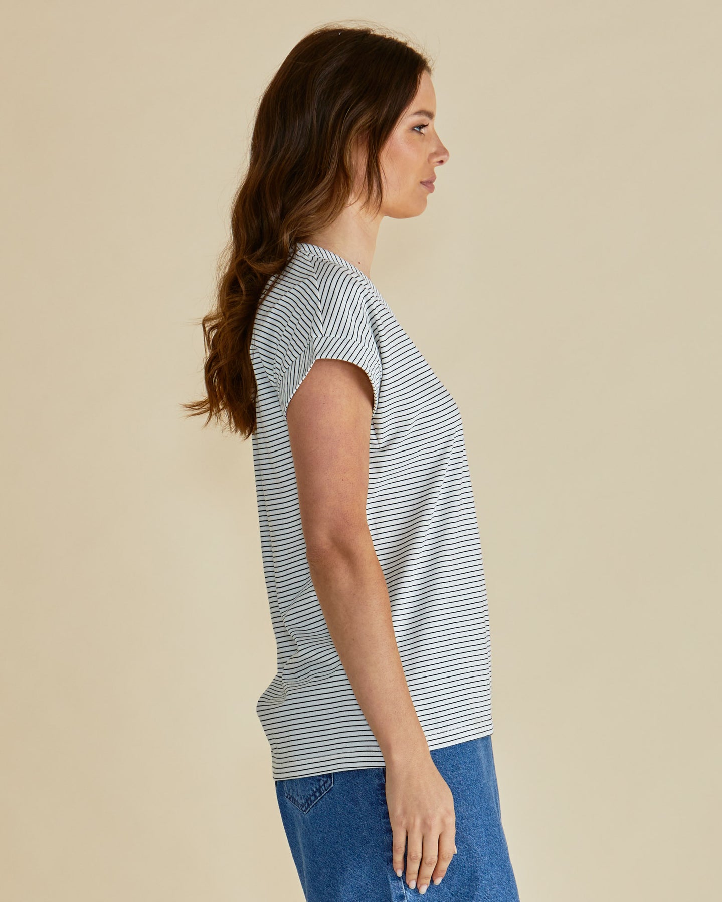 Betty Basics TRACY V NECK TEE BLACK/WHITE STRIPE