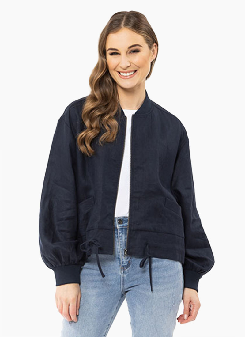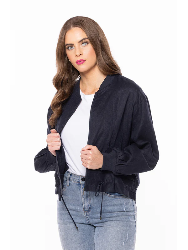 Seeking Lola KEEN Jacket Navy Blue linen